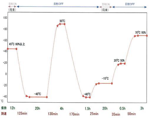 재료 노화 : 가득 찬 햇빛띠 조사장치. 열방사 : 메탈 할라이드 램프 700~1100W/m2